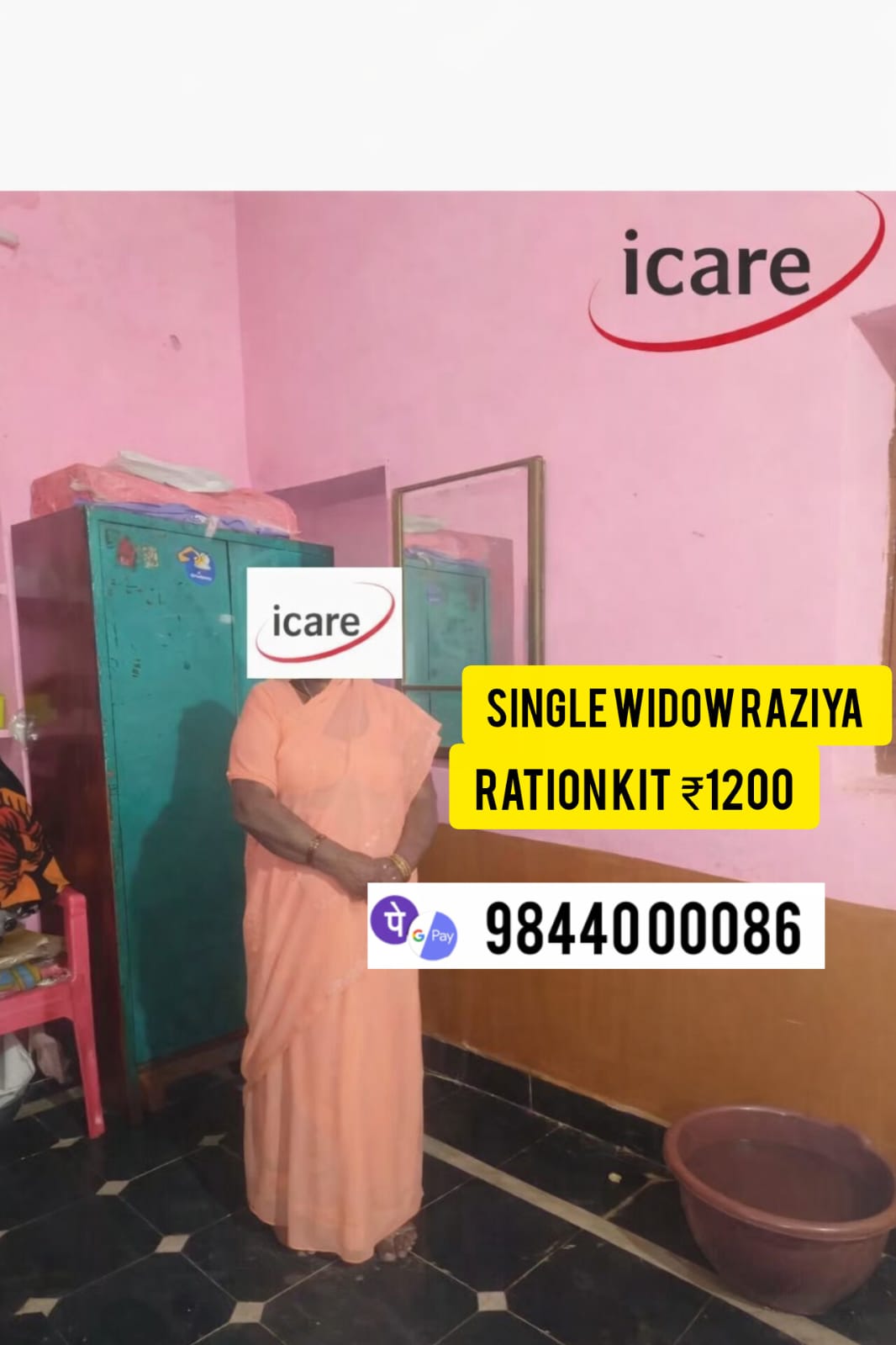 Help widow Shamshad Begum with ration Aid in Ambur, Tamil Nadu